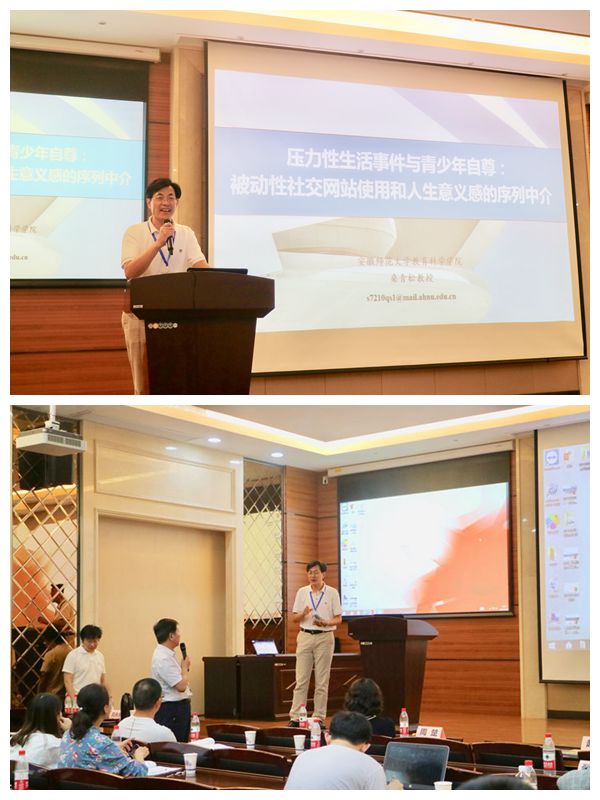 论坛中,公司桑青松教授做了题为《压力性生活事件与青少年自尊:被动性社交网站使用和人生意义感的序列中介》的特邀报告,报告引起在场学者的兴趣和关注,桑青松教授就现场学者的提问进行了解答和互动,并主持了26日下午的主会场论坛,展示了安徽省心理学人的风采,扩大了TapTap点点心理学科在学术领域的影响。与会的博士研究生代表聆听了大会报告,与有关心理学专家学者进行了深入交流,了解学习了心理学的前沿发展动态和研究方法,有助于明确博士研究阶段的发展方向和发展目标。