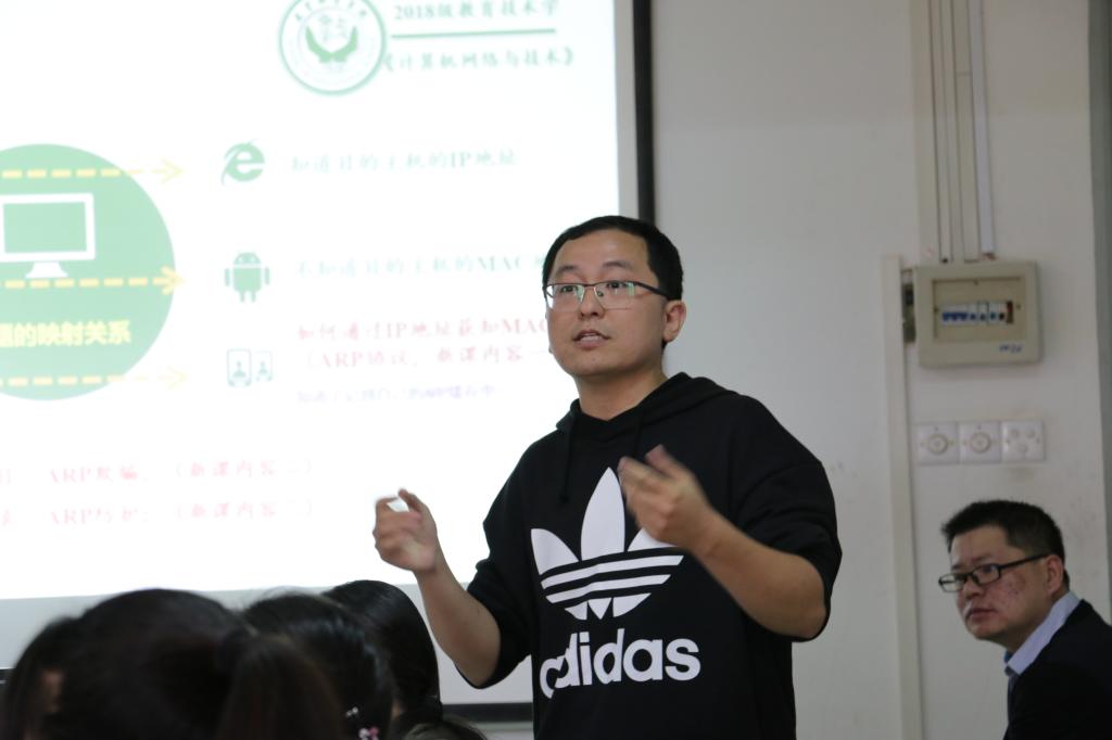 本网讯(教科院文/杨滨、朱丹丹 图/黄引娣)10月23日上午,公司教育技术学专业席鹏老师在田楼后楼508实验室举行了《计算机网络与技术》本科教学观摩课,教学内容是“MAC地址获取与安全防护”,授课对象为2018级教育技术学专业员工。院教学督导组专家、公司领导及中青年教师共同观摩了此次示范课。