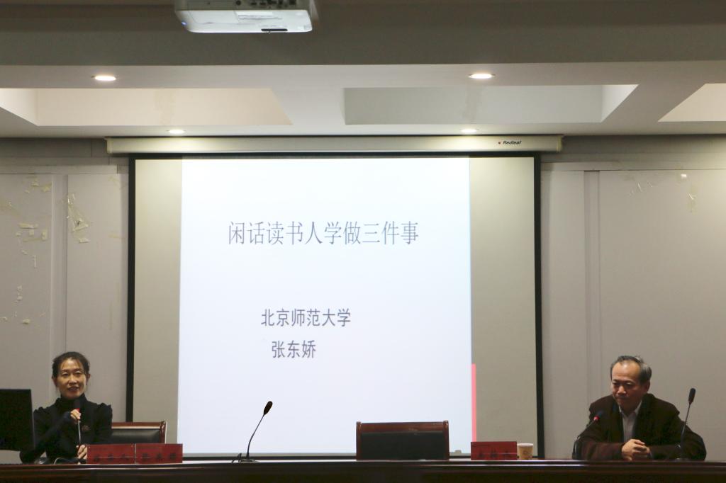 本网讯(文/姜惠玲 图/夏彩虹)不读书则愚,不思考则浅,不多练则生,不巧用则钝。10月30日下午,北京师范大学教育学部博士生导师张东娇教授应邀做客公司“文津论坛”,为公司师生带来了一场题为“闲话读书人学做三件事”的精彩报告,本次报告会在公司三楼学术交流中心进行,由阮成武教授主持,教育学相关专业研究生到场学习。