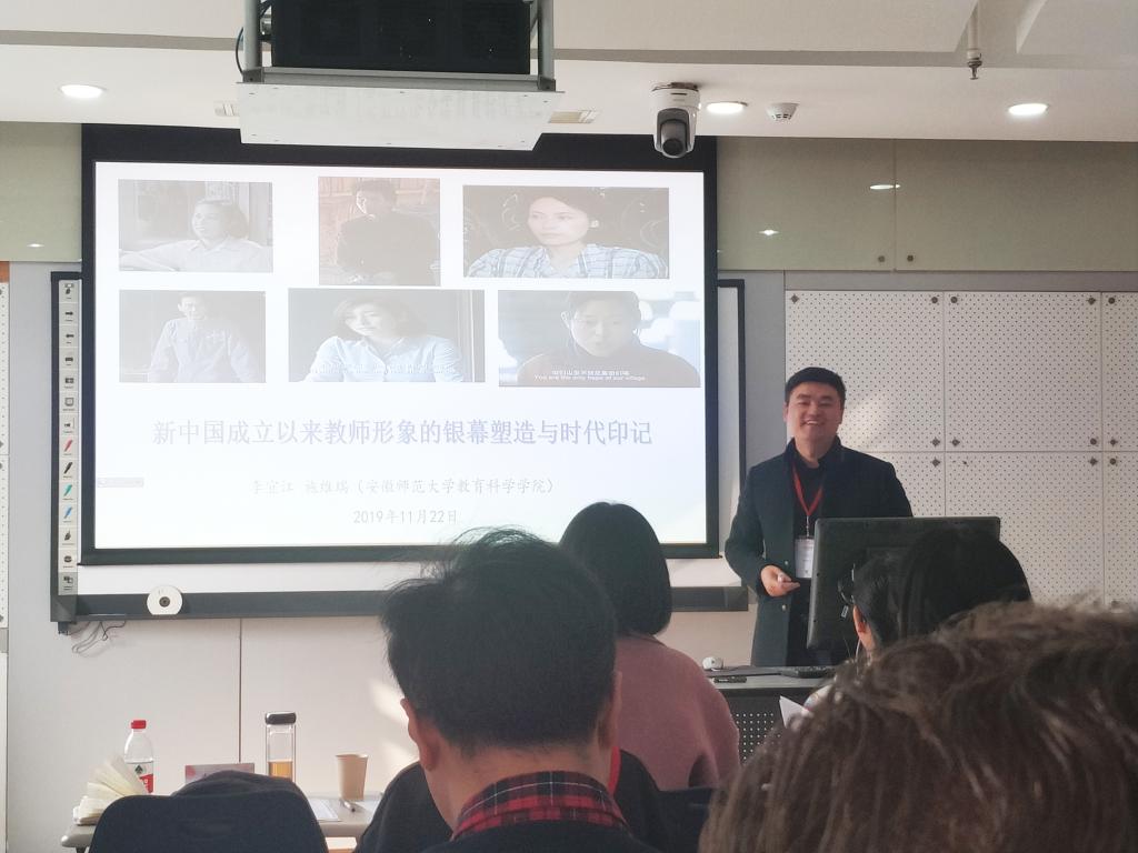 22日上午,公司李宜江教授在分组报告会中,以其和施维瑞同学合作的论文《新中国成立以来教师形象的银幕塑造与时代印记》为基础进行了分享,论文通过对新中国成立以来若干典型性代表性电影中教师银幕形象塑造的梳理和比较,指出银幕中的教师形象经历了新中国成立至“文革”前夕的思想传播者、“文革”至改革开放前夕的命运抗争者、改革开放至20世纪末的教育事业奉献者和21世纪以来多方利益的协调者等四种典型形象的流变。教师形象的银幕流变究其实质是特定时代社会发展对教师需求,教师群体特质及个体主观能动性交互作用的结果,是教师形象在银幕上留下的时代印记。长期以来,教师被赋予多种形象,他们的形象与民族命运和社会发展相连,与各种利益交织。展望未来,教师形象应更加突出育人的使命,更加突出员工灵魂与生命塑造者的角色。论文引起了在场多位老师和同学的提问和讨论。之后,李宜江教授还主持了第四小组的报告会。