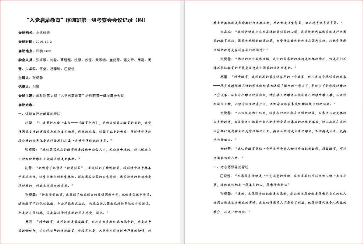 启蒙班向来重视对成员们思想动态的了解。通过启蒙服务小组,5名驻班党员和10位入党积极分子分别带领本组同学进行学习,通过谈话会,关心同学们的学习、生活等各个方面的内容,并且每两周开展一次教育考察会,及时了解本组成员的思想动态。本学期启蒙班学习心得累计256篇,座谈会与谈话会累计75次,考察记录表累计303篇。每两周一次的谈话会与考察会,驻班党员与小组长们充分了解成员们的思想动态,对成员的学习、生活、工作中产生的问题进行指导。这种交流方式,充分发挥了高年级优秀员工党员在朋辈帮扶中的作用,起到了应有的榜样引领示范作用。