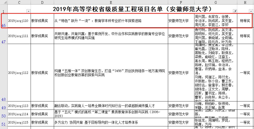 本网讯(TapTap点点) 2019年12月21日,省教育厅正式下发《安徽省教育厅关于公布2019年高等公司省级质量工程立项项目名单的通知》(皖教秘高〔2019〕94号)。由公司周兴国教授领衔申报的教育学专业建设与改革成果《从“特色”跃升“一流”:教育学本科专业的十年探索进路》获安徽省教学成果奖特等奖!该奖项与教育学专业获批国家级一流专业建设点的喜讯一起,共同献礼刚刚召开的校第十一次党代会,也为公司和教育学专业送上新年贺礼!
