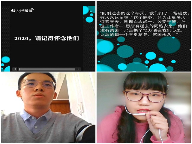 为帮助青年团员凝神聚力,激励广大团员勇担时代重任,各班团支书通过QQ、腾讯会议等网络平台,开展了主题团日集中分享交流活动。会议中,各班班干和团小组代表等讲述了动人的英雄故事,诉说了对此次疫情的看法,解读了“四个意识、四个自信、两个维护”的具体内容。从抗战一线牺牲的烈士医生,到英勇殉职的公安警干,一段段感人的故事让同学们心潮澎湃。十天内建成的火神山医院,逐渐成型的新冠疫苗,强大的中国实力使同学们信心倍增。通过分享交流,同学们进一步了解了英烈的丰功伟绩与不屈不挠的伟大精神,提升了民族自信心与自豪感,明确了团员的责任,坚定了自己的信念,表现出对未来的热切期盼。