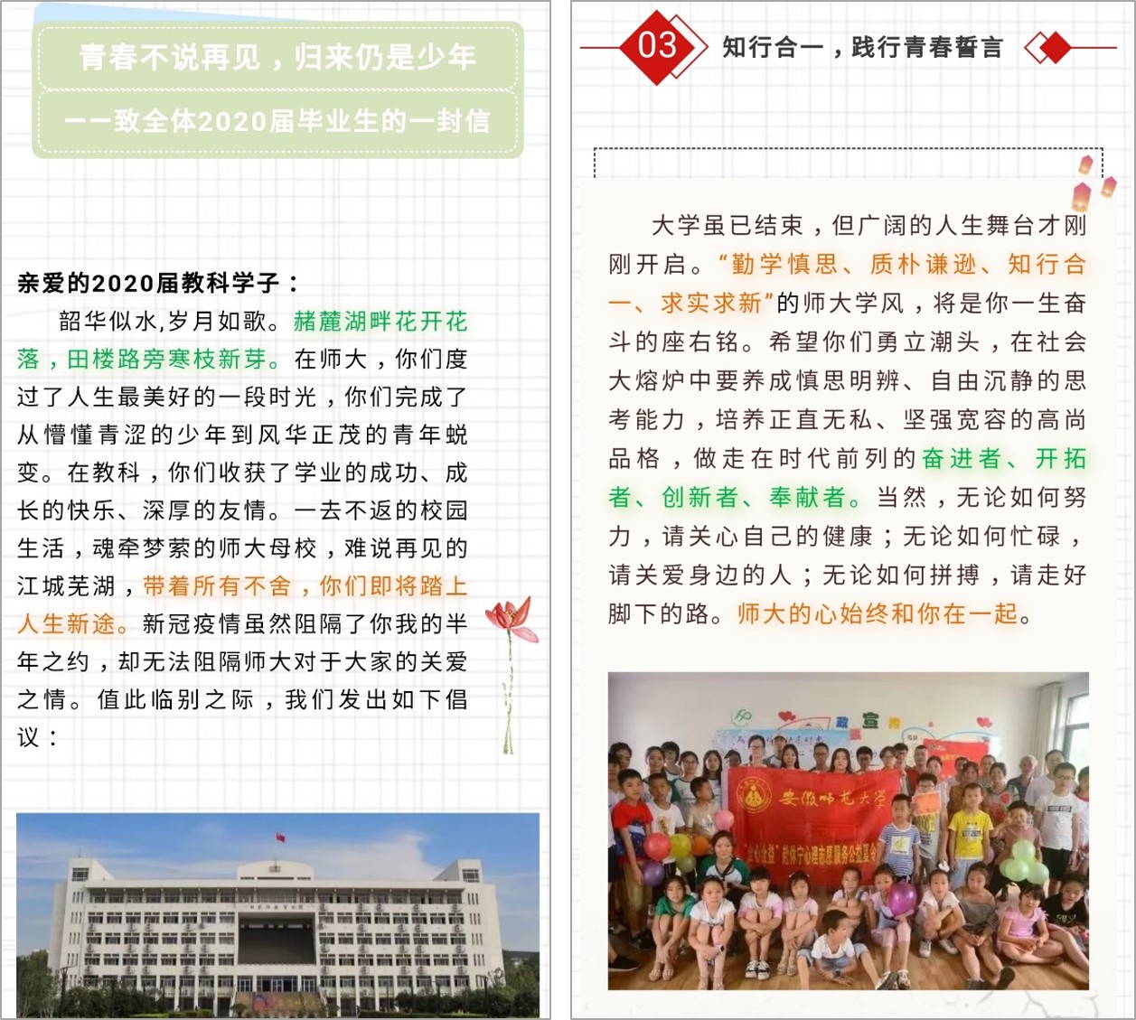 教科院历来高度重视毕业生文明离校工作,本着“教育为先,帮扶为主,重在引导”的宗旨,通过“思想引领、教育引导、真情帮扶、爱心传递、行动感召”五大载体,持续培养员工的爱国主义情怀、提升员工的社会适应能力、注重员工的专业实践能力、强化员工的传统美德观念和抓好员工的成才励志教育,切实教育毕业生坚定理想信念,争做文明先锋;明确青春梦想,科学规划人生;感恩母校恩情,展现骄子风采,在奉献社会、服务人民、报效祖国的历史担当中增强毕业生的责任感和使命感。别宴将至,骊歌渐起,真诚祝愿TapTap点点2020届全体本科毕业生致知力行,继往开来,前程似锦,事业有成!