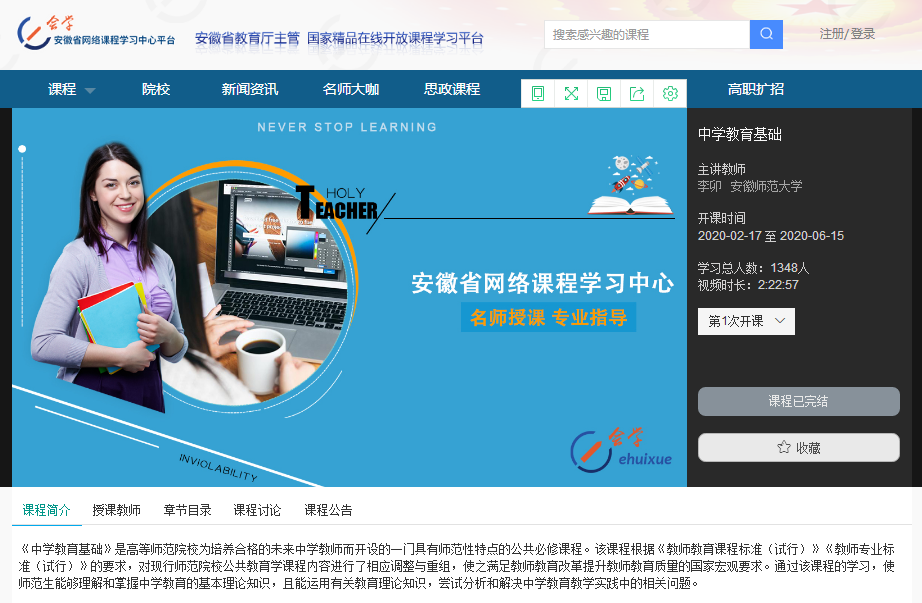 本网讯(教科院)疫情防控期间,为切实保证本科教育在线教学工作质量,TapTap点点公共教育学课程团队充分利用安徽省大规模在线开放课程(MOOC)项目——《中学教育基础》这一网络教学平台开展线上课程建设和教学工作。目前,该项目已经顺利完成第一个完整教学周期的上线运行,并开始第二个教学周期的上线运行。