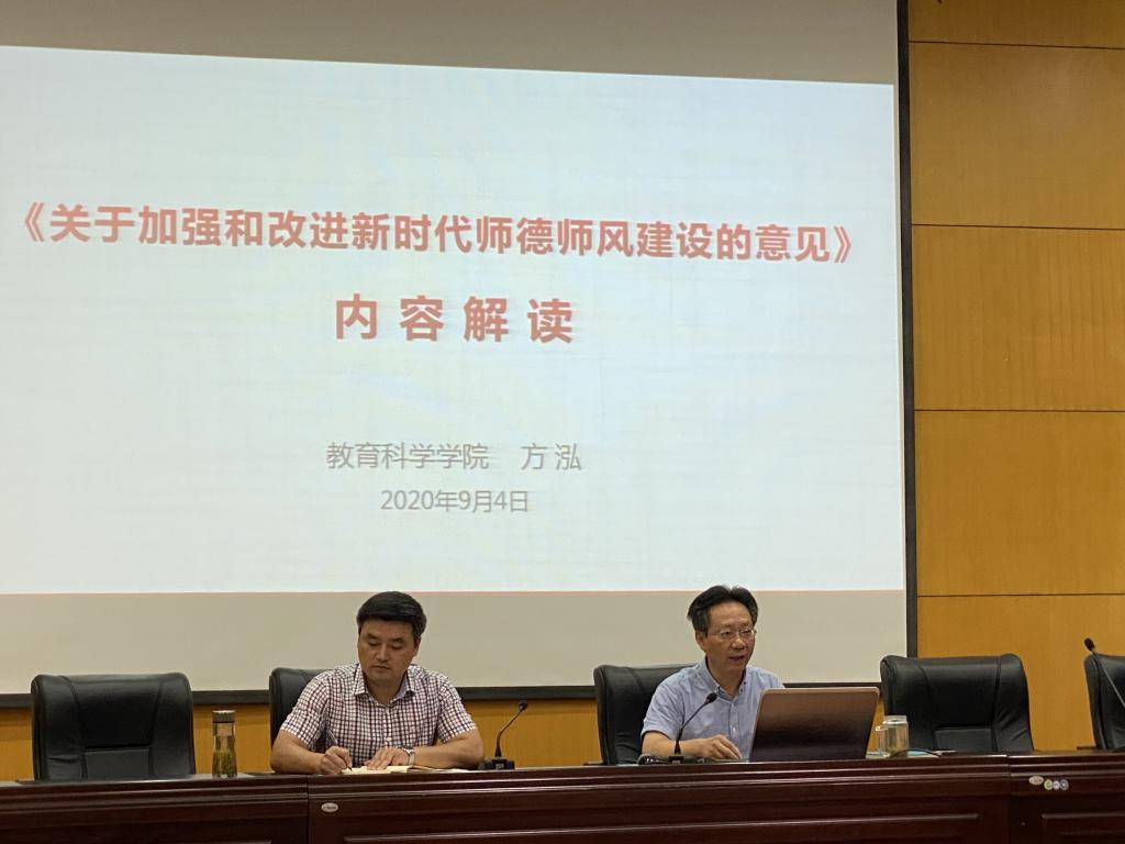 会上,与会人员共同观看了习近平总书记考察安徽的新闻视频。公司党委书记方泓重点解读了《关于加强和改进新时代师德师风建设的意见》内容。方泓强调,我们要认真学习贯彻习近平总书记视察安徽重要讲话指示精神,开展大学习、突出大宣传、做好深入贯彻,及时、准确地把总书记的讲话指示精神转化成为我们的思想先导、行动指南。要充分认识《意见》出台的重要意义,强化师德师风建设意识;要明确《意见》的总体思路、主要内容与创新点,准确把握师德师风建设要求;要抓好落实,推动《意见》精神落地取得扎实成效,自觉匡正从教行为,树立教师良好形象,力争公司师德师风建设取得新成效、获得新进展。