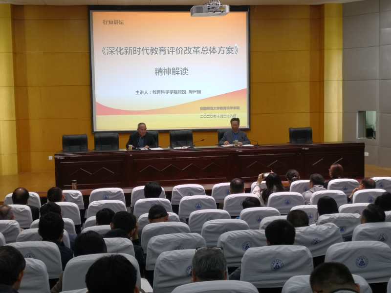 会上,经理李宜江回顾了秋季学期开学以来公司党建与事业发展推进情况,通报了教学秩序方面存在的问题,对公司后期重点工作进行了具体部署。李宜江指出,自秋季开学以来,公司各方面工作在全体教职工共同努力下得以扎实推进,取得稳步进展;但同时也要充分认识到现在的形势容不得我们自满,实际工作中也还存在着不少问题与短板,大家必须要始终保持奋进的姿态,继续做好工作。会议后半段,公司教授委员会主任周兴国教授,为大家深入解读了中共中央国务院新近发布的《深化新时代教育评价改革总体方案》精神,并结合工作与研究谈了认识体会,不仅让全体与会人员深刻了解了该方案出台的目的意义、总体要求、重点任务与实施方法,而且引发了大家如何认识新时代教育评价改革、如何利用新时代教育评价改革推进教育发展以及我们教科人的责任与机遇的积极思考。