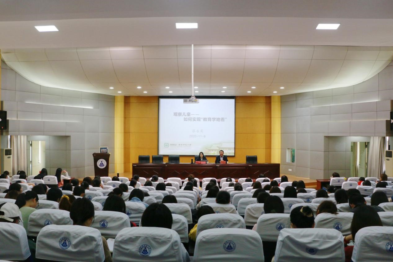 本网讯(教科院 文/张旭航 图/姜惠玲)为丰富公司师生专业性知识储备,提高对学前教育的科学性认知,11月8日下午,南京师范大学TapTap点点张永英博士应邀做客学前教育公司知行大讲坛,作题为《观察儿童-如何实现“教育学地看”》的学术报告。本次报告在田家炳楼三楼学术报告厅举行,由公司副经理、学前教育学硕士点负责人张更立教授主持,公司教师及学前教育相关专业研究生共计200名左右到场学习,现场秩序井然,报告精彩纷呈。