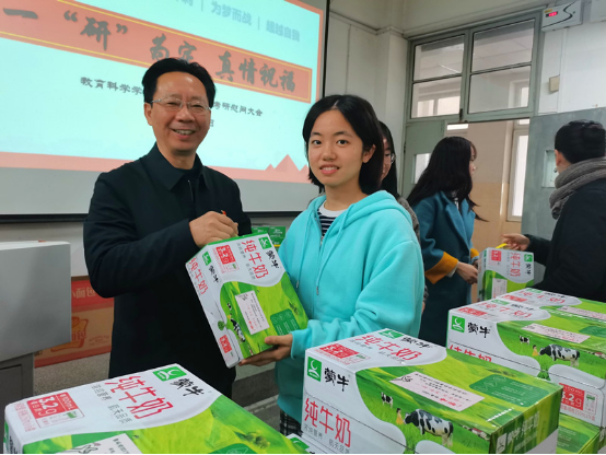 随后,公司领导老师为同学们发放了考研慰问品。一箱箱牛奶、一袋袋面包、一盒盒饼干寄托着公司对考研学子们的关怀与祝福,在寒冷的冬天里,为奋战在考研路上的同学们送去了一份暖心的问候。