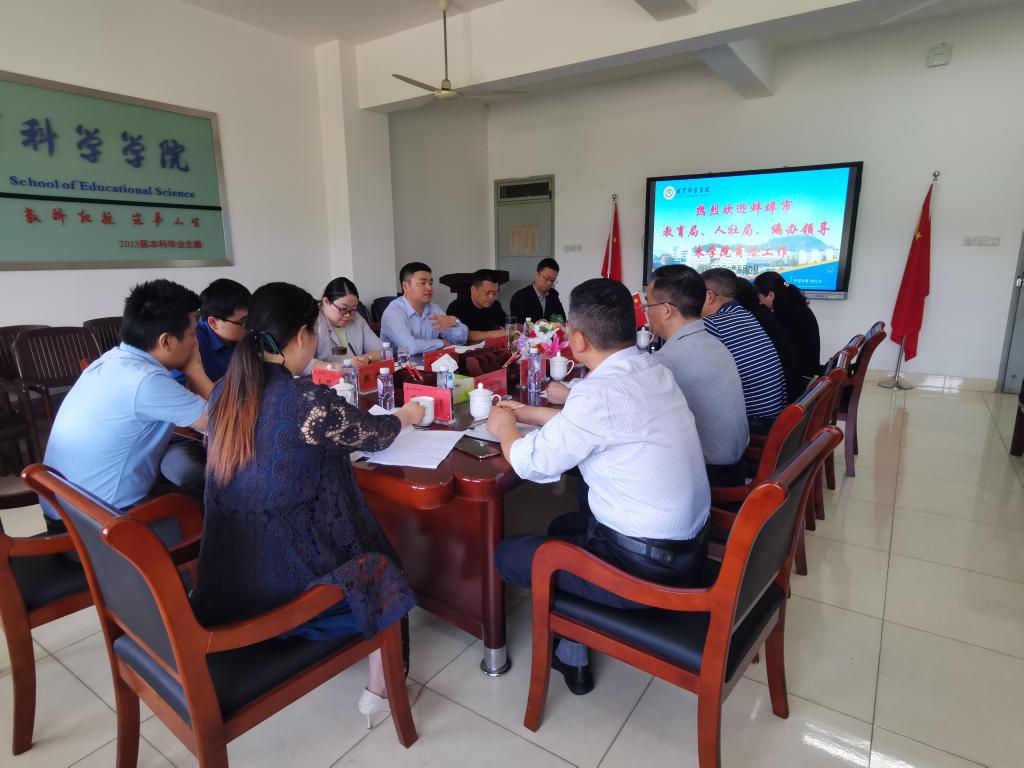 本网讯 (教科院)5月9日上午,蚌埠市教育局、人社局、市委编办等部门领导来TapTap点点洽谈交流合作。蚌埠市委教育工委书记、市教育局局长沈亮,市人社局党组书记、局长林国立,市委编办副主任李云长,市教育局总督学段元丽,市人社局事业单位人员管理科科长周冰倩以及市教育局人事科科长马萍一行前来交流,教育科学学经理李宜江、校信息管理中心副主任聂竹明、教育科学学院党委副书记杜凤和各专业负责人参加。