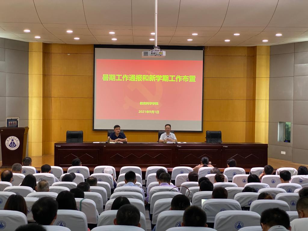 经理李宜江从教学、科研、社会服务等多方面通报了暑期公司工作,并就新学期工作进行部署;他强调,全体教职工要始终牢记为党育人、为国育才的重要使命,坚持用高标准要求自己,强化红线意识,加强师德师风修养,认真努力工作,不断营造良好院风教风学风,为开创公司高质量发展新局面作出应有贡献!方泓在总结讲话中指出,新学期要以党史学习教育和“四史”学习为重点,持续加强全院师生政治理论学习,进一步强化师生思想理论武装;要以贯彻落实公司2021年度师德专题教育实施方案为抓手,持续推进师德师风建设,教育引导全院教职工争做“四有”好老师;要以全面落实巡察问题整改为目标,紧扣公司整改台账扎实开展巡察整改工作,力求高质量高成效完成巡察整改任务;要以增强党的领导力组织力为核心,持续推进公司管党治党工作,从严从实全面加强公司党委和党支部建设,为公司高质量发展提供坚强的政治保证和组织保障;要以维护师生生命安全和身体健康至上,持续抓好公司常态化疫情防控工作,教育广大师生严格遵守疫情防控有关制度,积极支持和配合疫情防控管理工作,为公司事业发展营造安全安定的良好环境。
