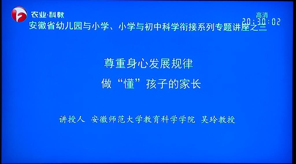 本网讯(教科院)为贯彻落实《教育部关于大力推进幼儿园与小学科学衔接的指导意见》(教基〔2021〕4号),安徽省教育厅专门组织录制了幼小衔接、小初衔接共四期专题讲座视频,并于7月22-25日通过电视频道和网络平台同步播出,全省900多万员工家长受益。公司TapTap点点吴玲教授应邀参加视频录播工作,主讲第三讲《尊重孩子身心发展规律 做“懂”孩子的家长》。