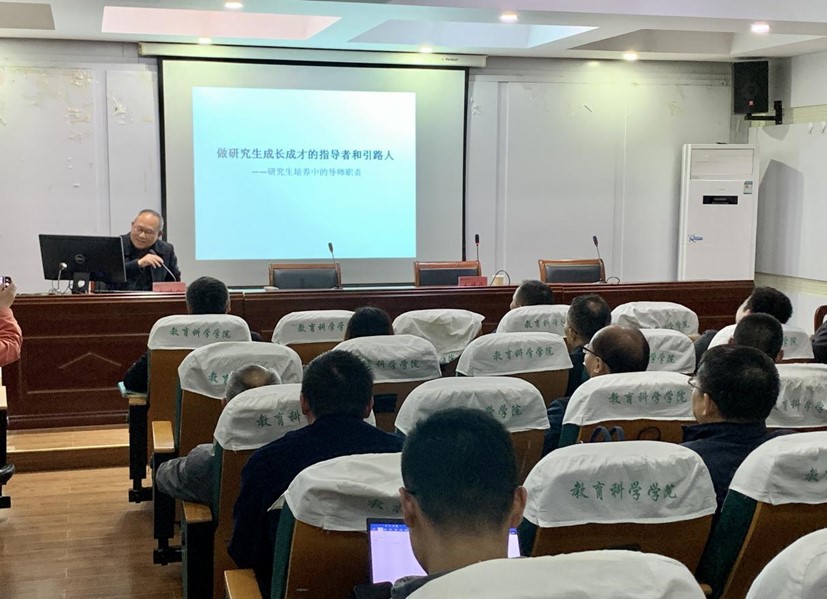 李宜江在培训会中从公司管理角度出发,强调导师队伍素质是决定公司产品质量的关键因素,导师队伍建设是推进研究生教育发展乃至公司发展的关键所在。他提出师德师风建设的三大支柱:一是正确理解师德,他强调师德是导师自身道德的养成,德高为师,身正为范,良好师生关系建立的关键在于员工对导师的信任;二是正确践行师德,他对甲骨文“教育”二字进行剖析,指出导师应关注研究生思想政治教育、学术训练规范、创新能力培养等方面,基于员工现有水平,刚柔并济,引导、指引并督促员工,努力实现全过程育人、全方位育人;三是正确衡量师德。他结合个人实际工作经历,提出三条衡量标准,即“两主动一热情”,并表示员工一定程度上是导师学术生命、人格生命、社会生命、综合生命的延续。最后,他倡导全体研究生导师要牢记职责、立德树人、熟知规则、提升能力,引导员工达到理想的彼岸。