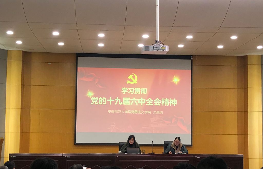 会上,团中央青年讲师团讲师、安徽省委讲师团专家库青年宣讲名师、马克思主义公司副教授沈燕培作党的十九届六中全会精神学习辅导报告。报告从深刻认识总结党的百年奋斗重大成就和历史经验的重大意义、深刻认识历史决议的主要内容和重大创新、深刻认识以史为鉴、开创未来的重要要求等方面,进行了系统阐述和深入解读。全体教职工表示,在接下来的工作中要自觉把学习成果运用到本职工作中去,自觉做好党史的学习者、宣传者、贯彻者。