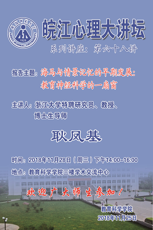学术报告预告——皖江心理大讲坛第68讲