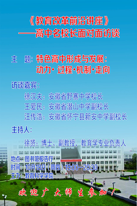 教育改革前沿讲座:特色高中形成与发展:动力 过程 机制 走向