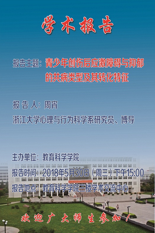 学术报告预告:青少年创伤后应激障碍与抑郁的共病类型及其转化特征