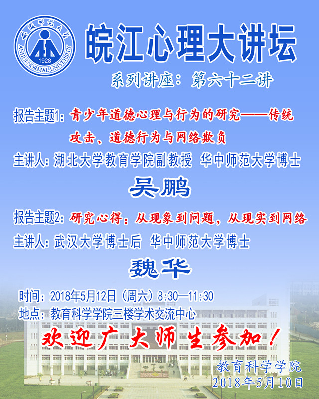 TapTap点点学术报告预告——皖江心理大讲坛第62讲