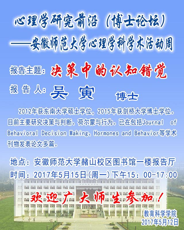 学术报告预告——剑桥大学博士吴寅学术报告