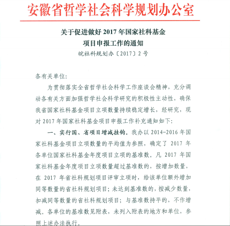 【科研通知】省社科办《关于促进做好2017年度国家社科基金项目申报工作的通知》
