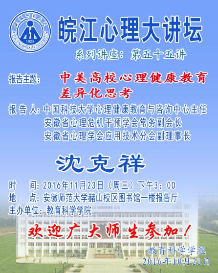 皖江心理大讲坛第55讲——中科大沈克祥学术报告预告