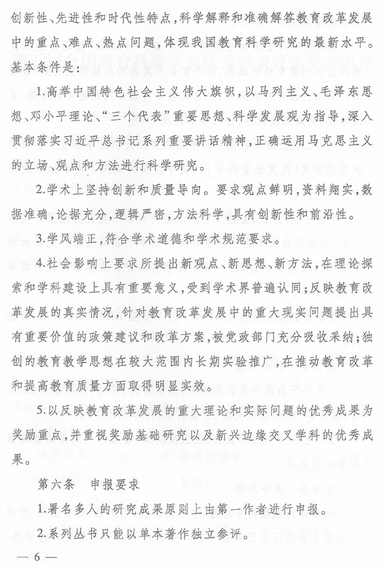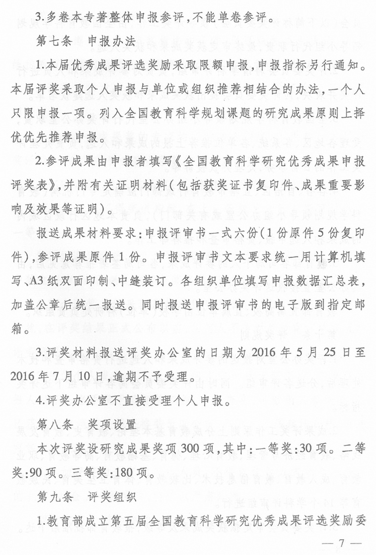 1.《第五届全国教育科学研究优秀成果奖申报评审书》纸质版一式8份及对应电子版,要求A3纸双面印制,中缝装订。