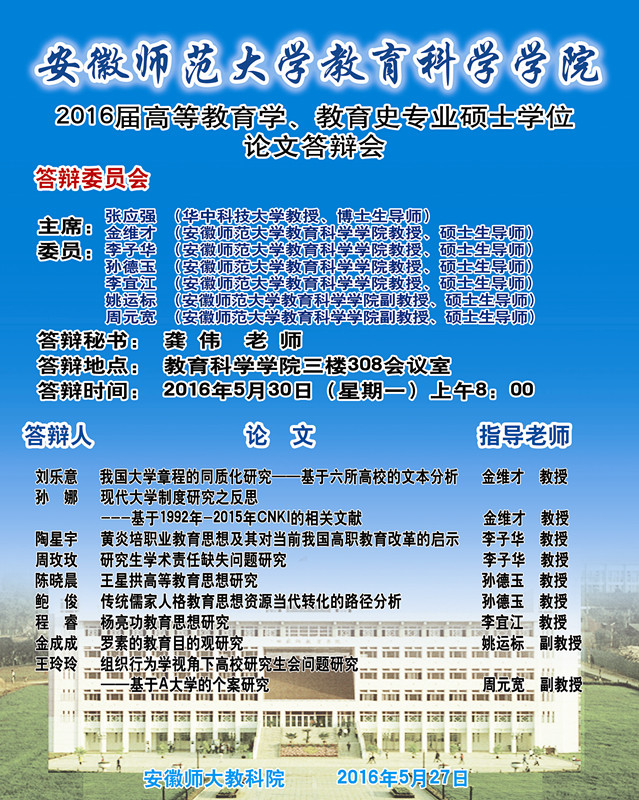 【研究生论文答辩】2016届高等教育学、教育史专业硕士学位论文答辩会