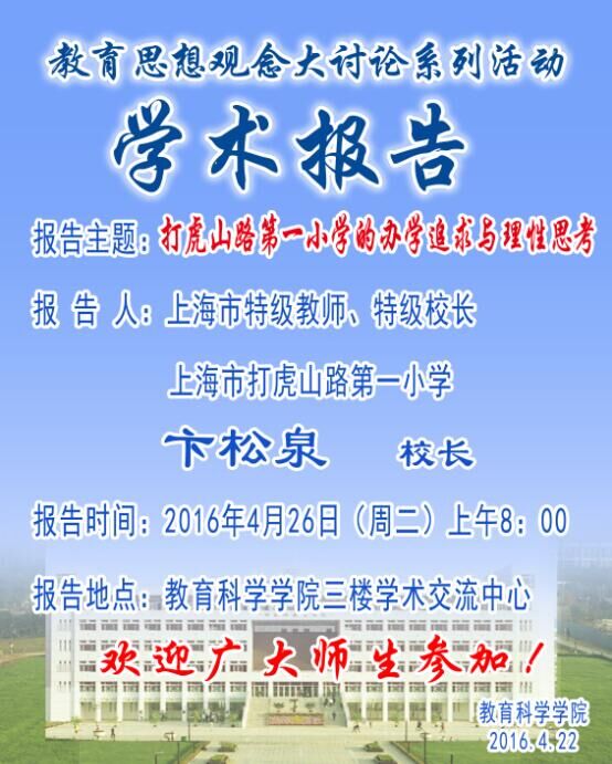 学术报告预告——上海市打虎山路第一小学卞松泉董事长学术报告
