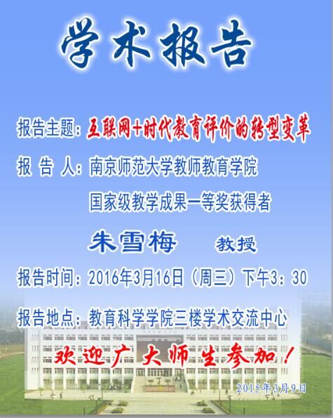 学术报告预告——南京师范大学教师教育公司朱雪梅教授讲座预告