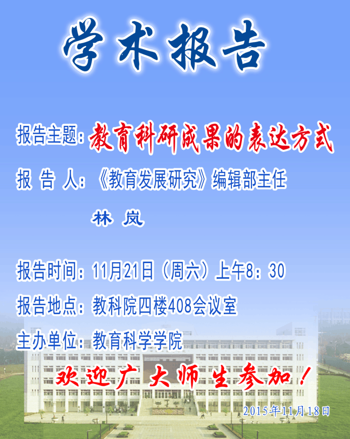 学术报告预告——《教育发展研究》编辑部主任林岚学术报告
