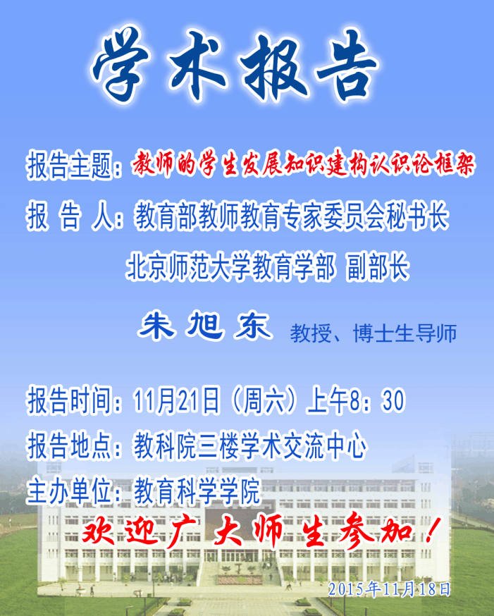 学术报告预告——北京师范大学博士生导师朱旭东讲学预告