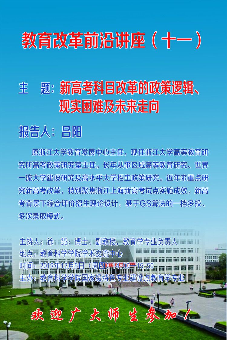 学术报告预告:浙江大学高等教育研究所高考政策研究室主任吕阳学术报告
