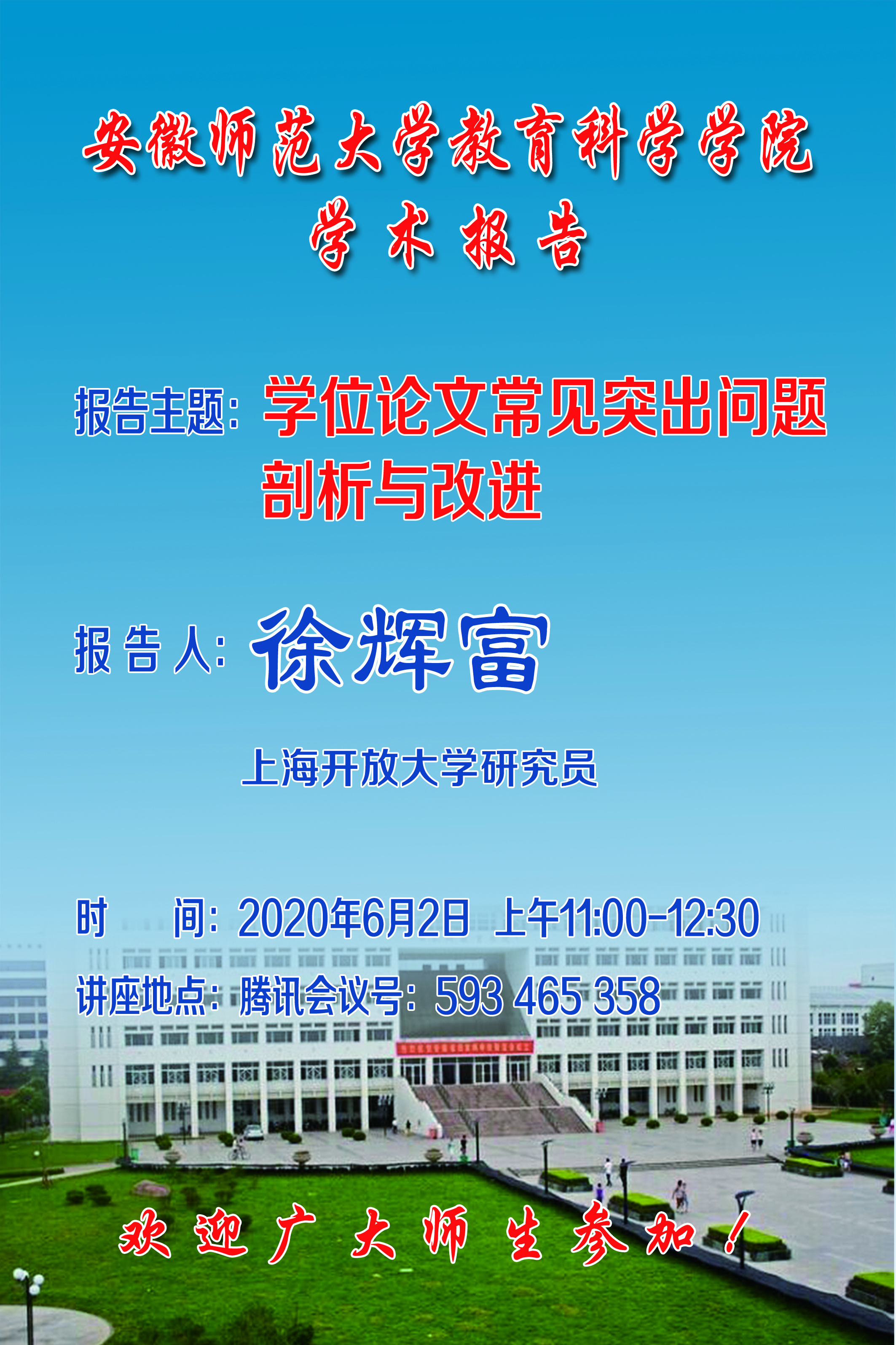 学术报告预告:上海开放大学徐辉富研究员报告——学位论文常见突出问题剖析与改进