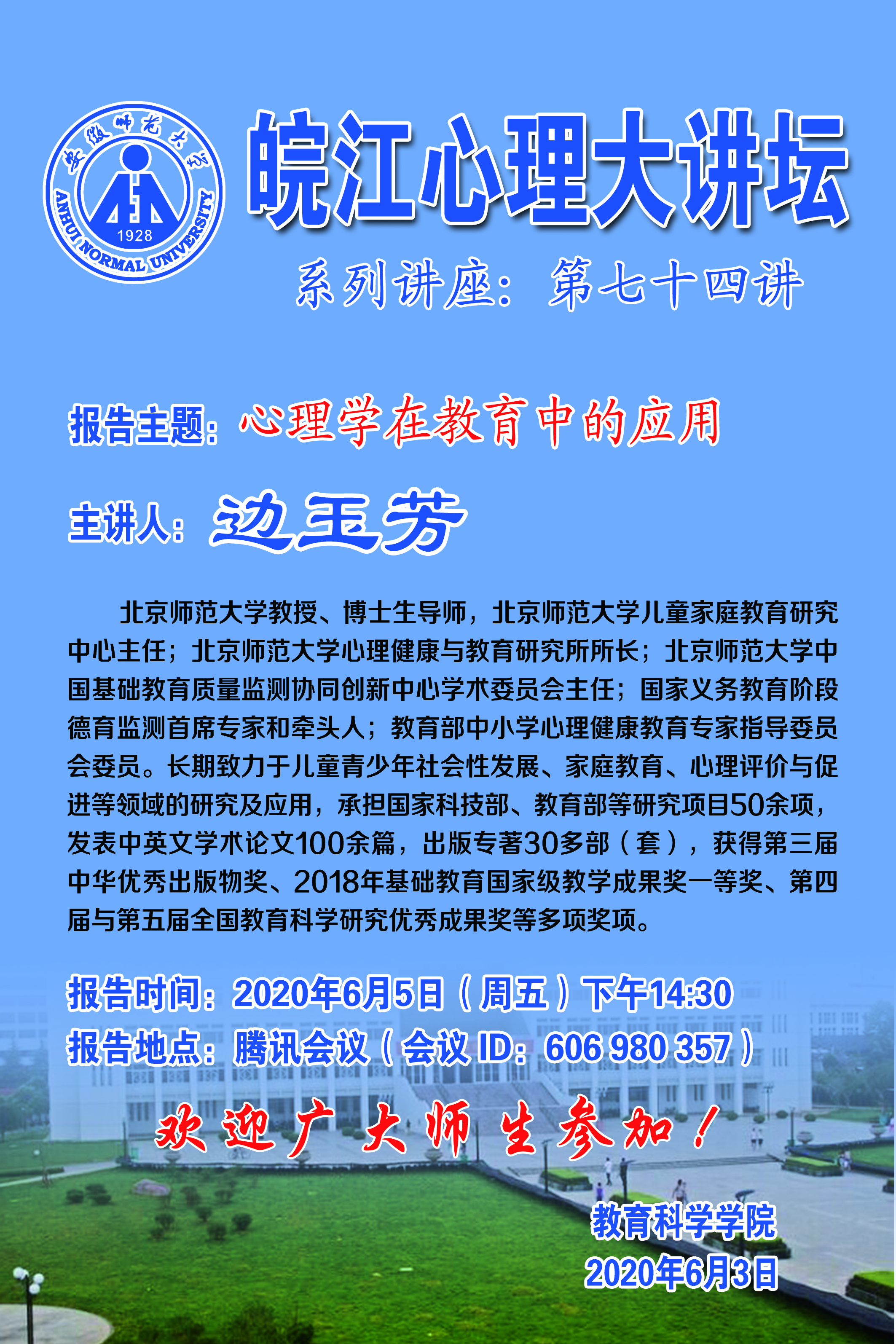 学术报告预告——皖江心理大讲坛第74讲