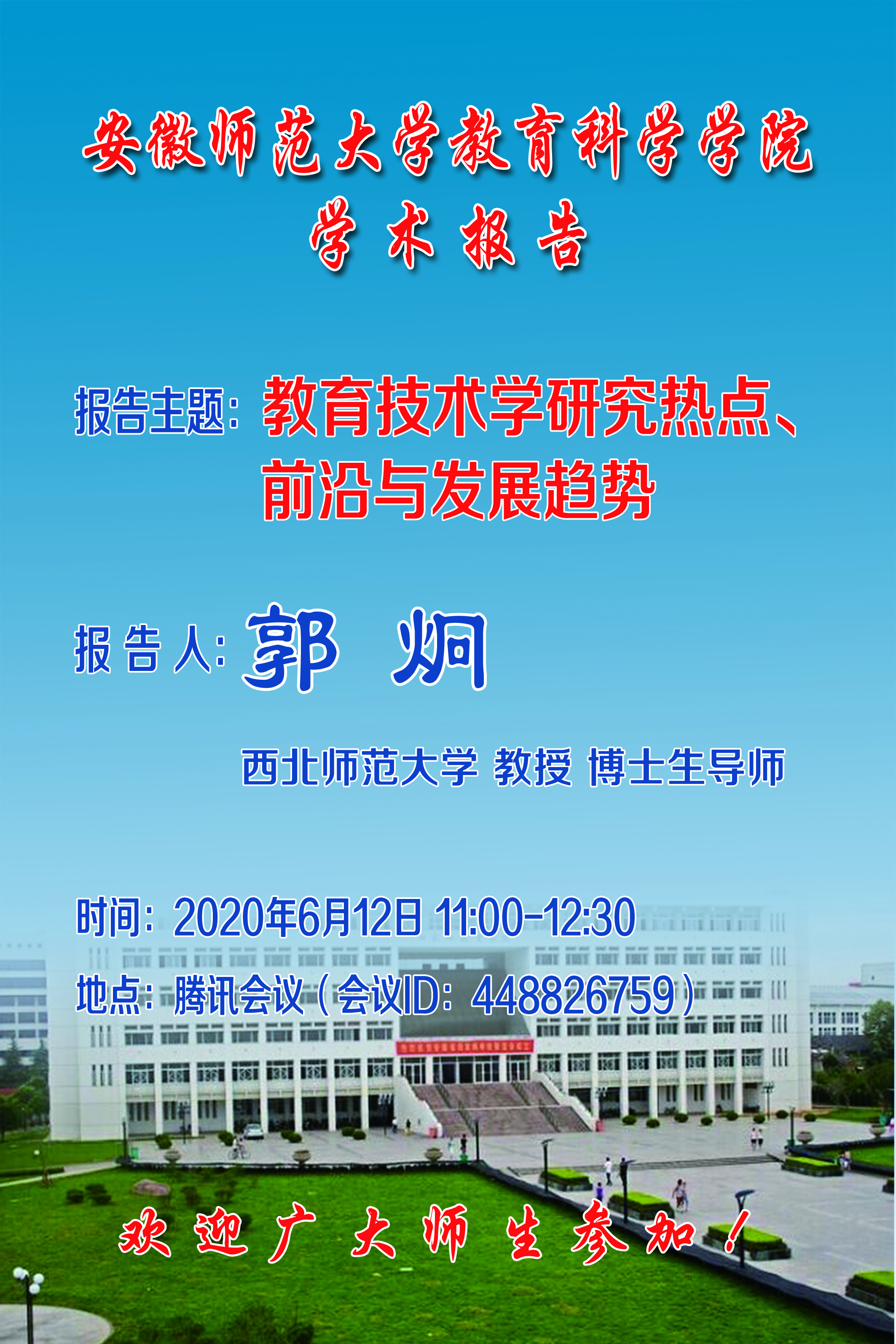 学术报告预告:郭炯:教育技术学研究热点、前沿与发展趋势