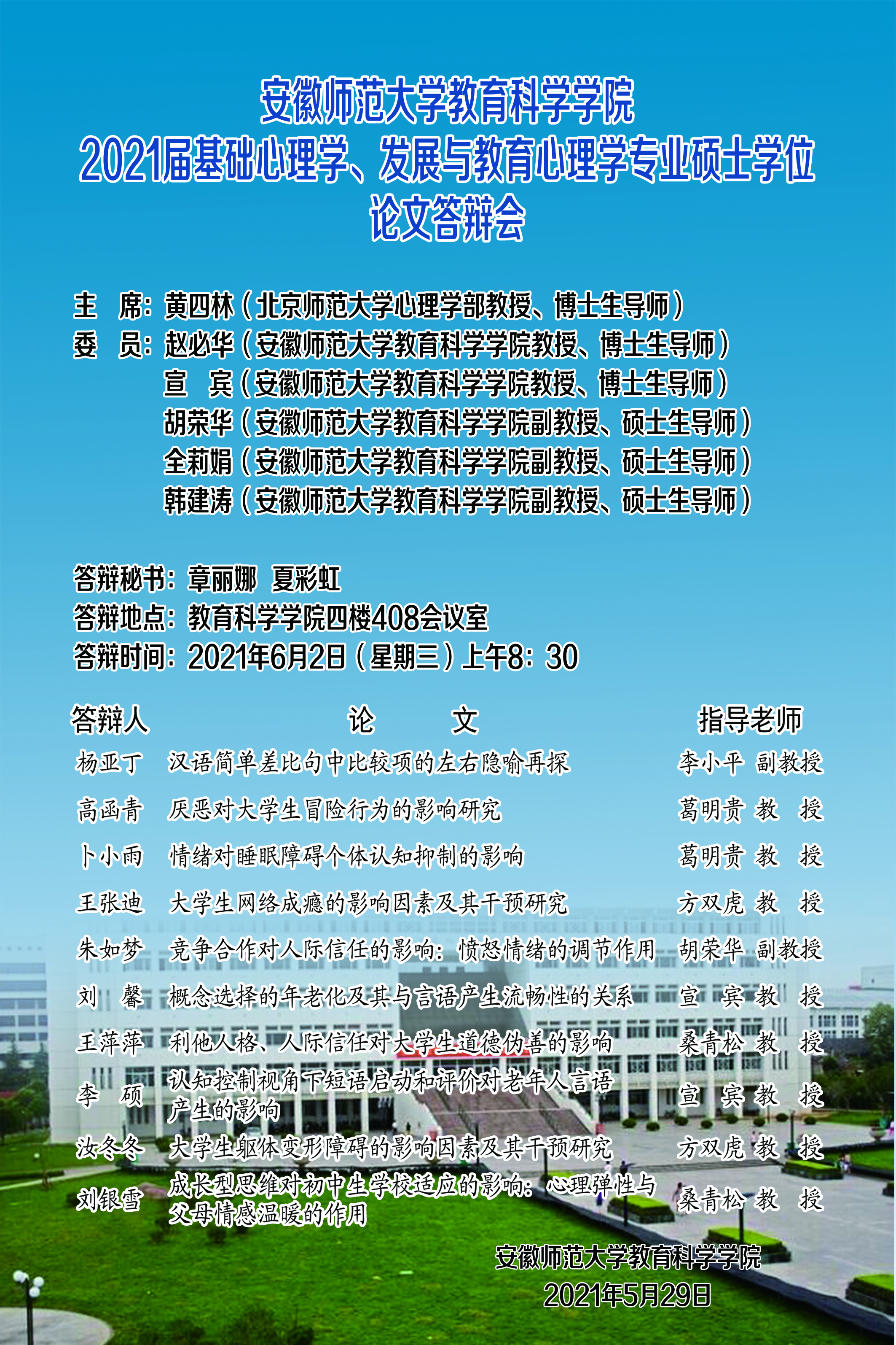 TapTap点点2021届基础心理学、发展与教育心理学专业硕士学位论文答辩会