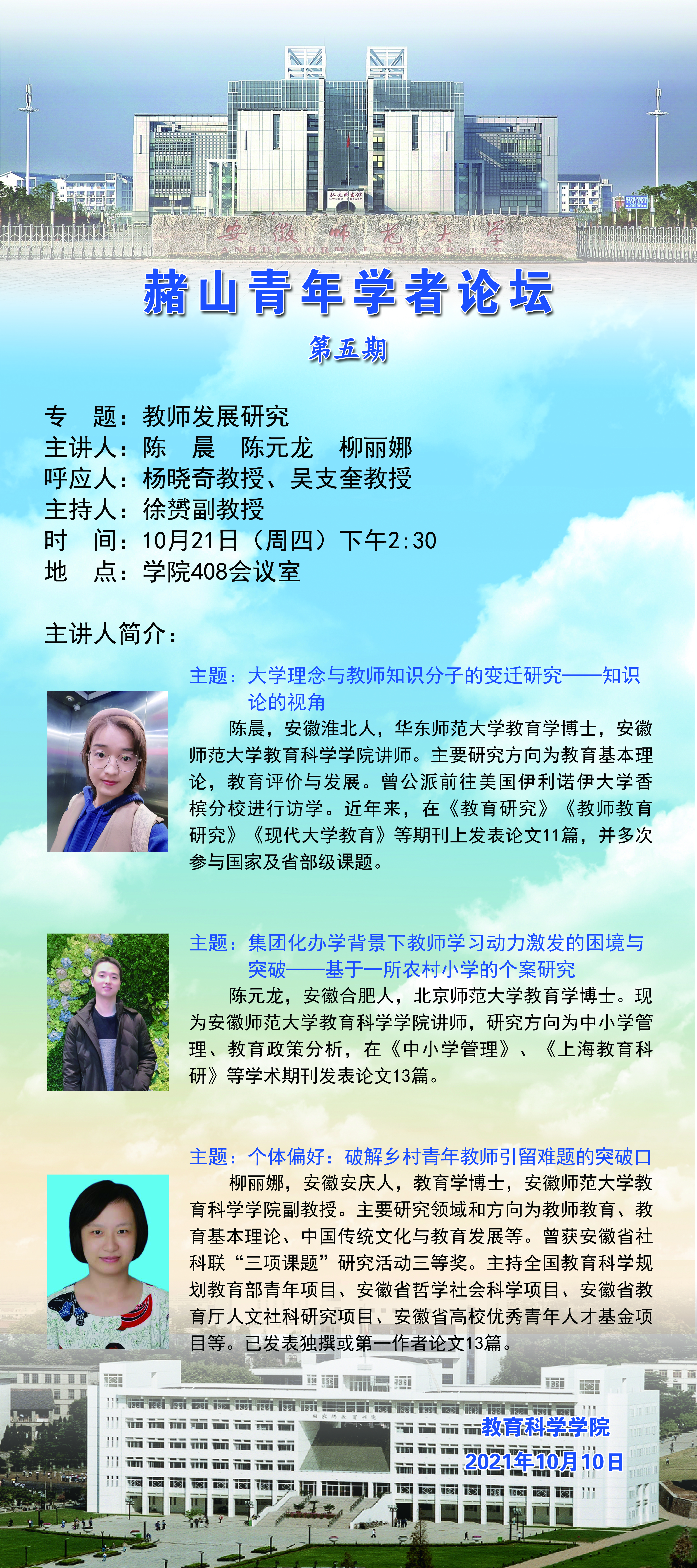 【学术预告】赭山青年学者论坛第五期:教师发展研究专题