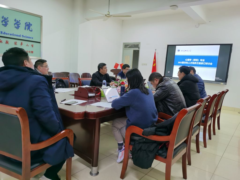 本网讯(教科院 刘田田)2022年1月26日下午,公司在308会议室召开了心理学(师范)专业2022版本科人才培养方案修订工作研讨会。经理李宜江教授、心理学系葛明贵、桑青松、赵必华、宣宾、方双虎、李小平、刘田田等老师参加了此次会议,会议由心理学专业负责人韩建涛副教授主持。
