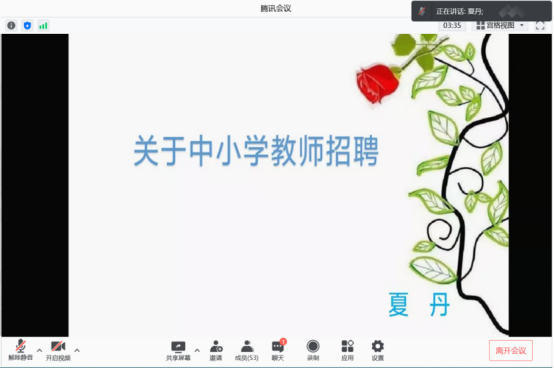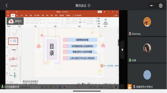 谭茹轩介绍了分享会的主题、流程,并对分享员工表示感谢,受邀员工围绕研究生生涯规划和中初教育求职经历进行分享并针对同学们提出的问题进行答疑交流。