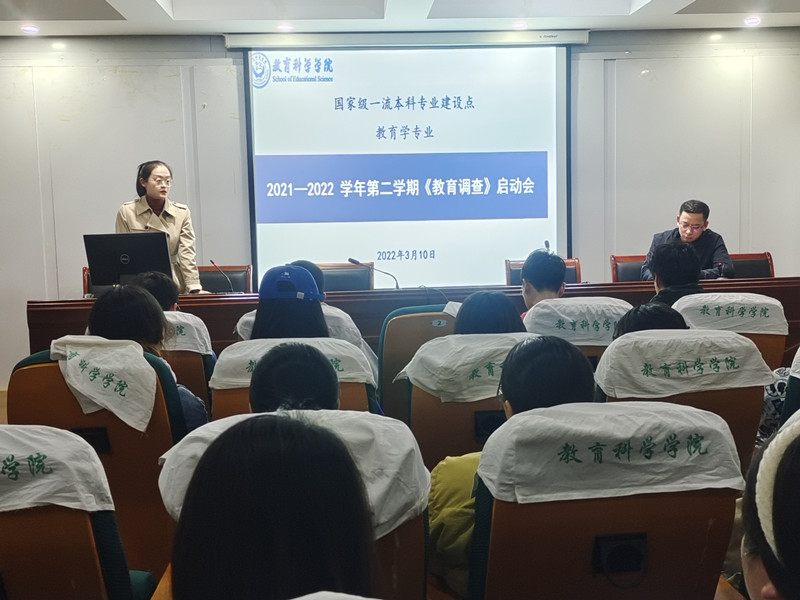 本网讯(文/谢雅雯 图/张思雪)为顺利开展《教育调查》课程,3月10日晚,国家级一流本科专业建设点教育学专业《教育调查》启动会在田楼B座三楼学术交流中心顺利举行。会议由课程负责人滕曼曼、徐赟两位老师主持, 19级、20级教育学专业全体本科生到场参加。