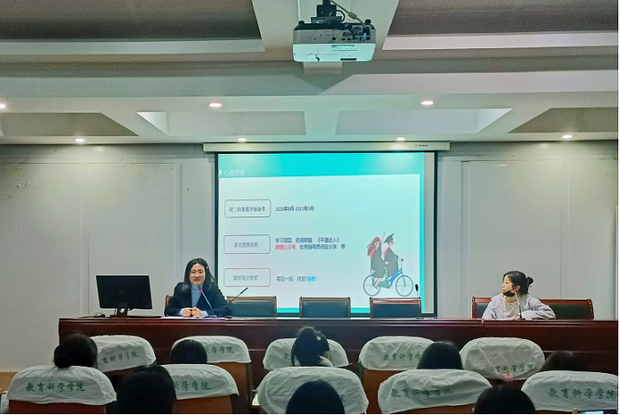 赵茜结合自身经历,向同学们分享了她的“3+2”备考历程,其中“3”是三次考研经历,“2”是指在小学教师和高校辅导员之间的就业抉择。她向同学们介绍了自己的辅导员备考经验,要早做准备,对自己的未来有清晰的定位,拥有充分的时间进行考虑和抉择。要多方搜集资料,善于从身边发现资源,并向同学们推荐了微信公众号、学习强国app、小红书app、qq群等平台收集备考资料。要做好每日积累,坚持每天学习与练习,让坚持成为一种习惯。
