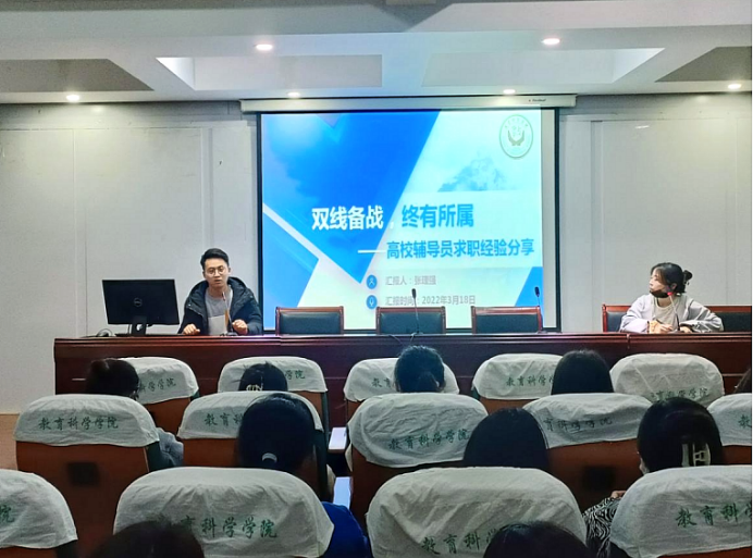 3月18日下午,公司2022届毕业生就业指导分享会——高校辅导员专场在教科院313学术交流中心举行。公司张理强、赵茜两位本科生辅导员应邀进行分享交流,50余名在读研究生参加,分享会由研究生会员工部干事汪宜萍主持。