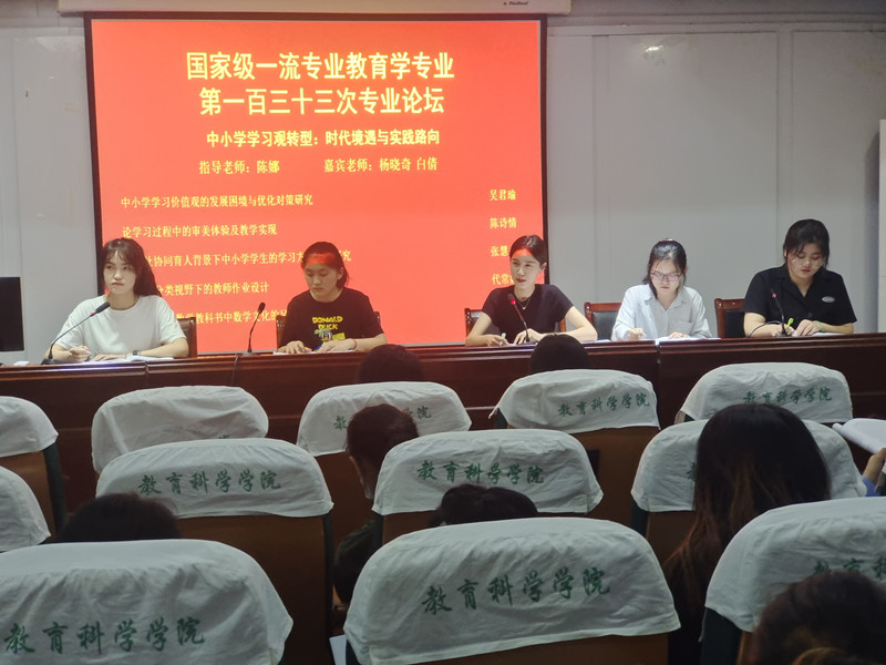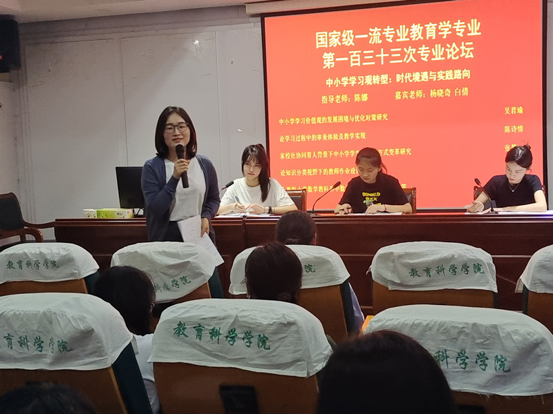 本网讯(文/谢雅雯 图/张思雪)5月8日晚,在TapTap点点三楼学术交流中心,国家级一流本科专业建设点教育学专业成功举办第一百三十三次专业论坛。莅临本次专业论坛的有小组指导教师陈娜以及嘉宾教师杨晓奇和白倩,19级、20级教育学专业全体本科生及21级部分教育学类专业本科生到场参加,并由19级教育学赵一苇担任主持人。
