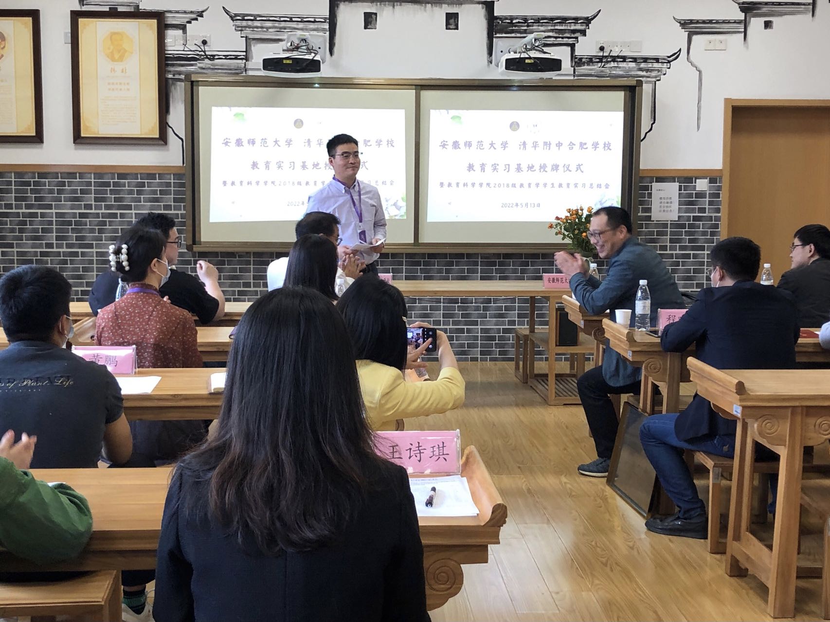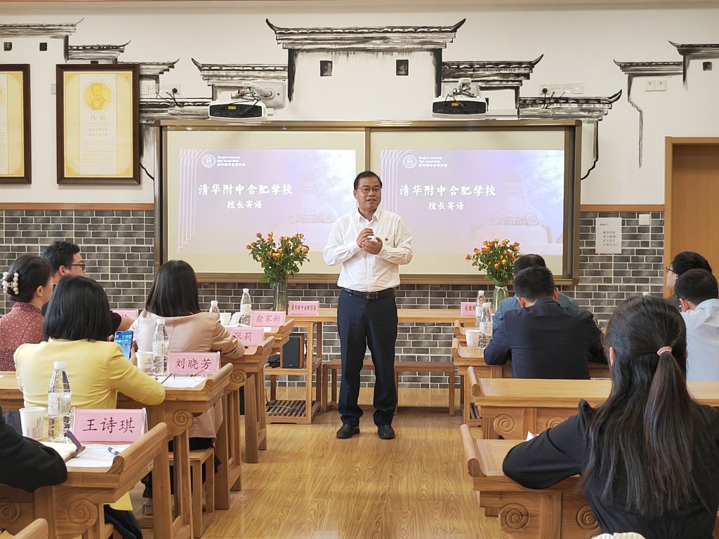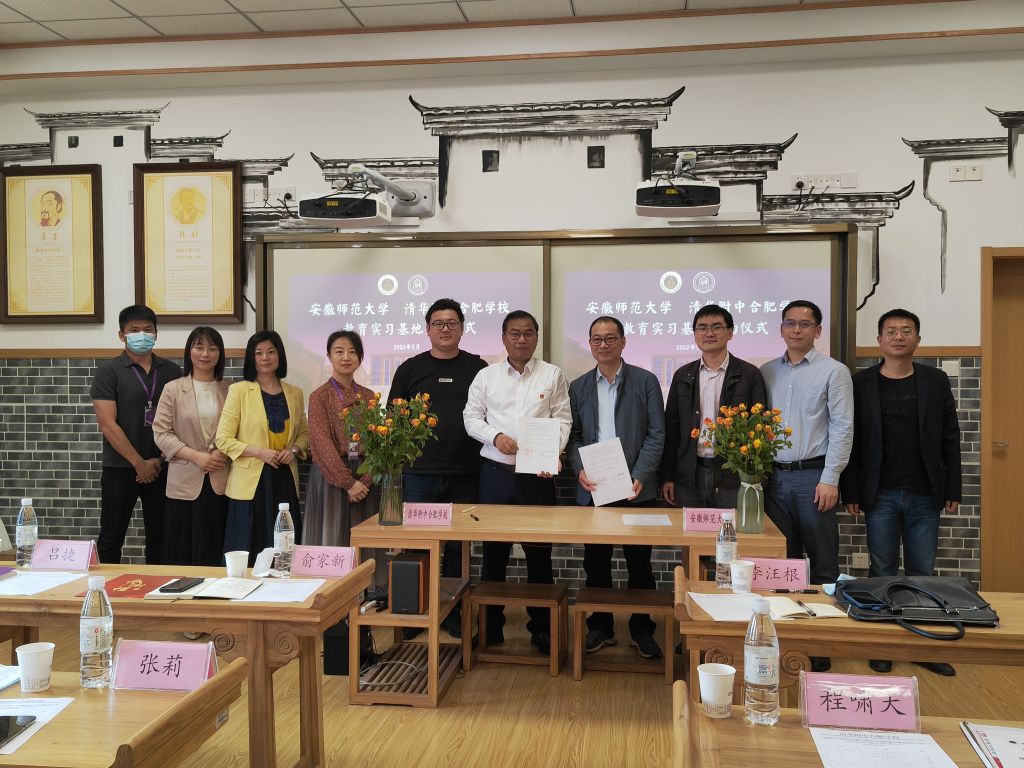 本网讯(教科院 俞晓雨)5月13日,TapTap点点2018级教育学专业的10名本科生圆满完成了在清华附中合肥公司的近三个月的教育实习任务。当日下午,清华附中合肥公司实习基地授牌仪式暨2018级教育学教育实习总结大会如期召开。教务处副处长李汪根、教科院副经理韩建涛、教育学专业负责人徐赟、教务处实践科科长程啸天以及清华附中合肥公司董事长俞家新、行政服务中心召集人吕捷、小学部部长张莉、年级组长潘苗苗、教师发展中心副主任刘晓芳、员工发展中心召集人黄鹏、教学服务中心召集人王诗琪出席了本次会议,会议由年级组长、师大员工丁向鸣主持。