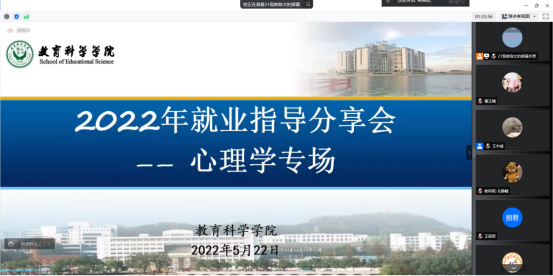 5月22日晚,公司通过腾讯会议平台针对2022届毕业生们开展了心理学专场就业指导分享会。研究生辅导员谭茹轩及近40名硕士研究生在线交流学习,院研究生会员工部成员王宇威主持。