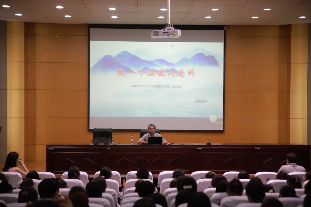 本网讯(教科院)加强师德师风建设,提高师范生自身修养。教育系邀请全国师德标兵、全国模范教师、全国最美思政课教师、马克思主义公司路丙辉教授对《教师职业道德修养》师德体验模块进行授课,主题为“做一名温暖的老师”。讲座于6月1日晚七点在田家炳教育书院三楼报告厅举行,19级辅导员莫大贡、21级辅导员赵茜及21级教育学类专业全体员工参加,由教育系主任徐赟主持。