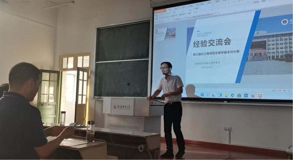 本网讯(教科院 唐小菲) 为了进一步提升心理学专业师范生的教学能力,提高心理学人才培养质量,6月8日下午4时,心理学专业在教学楼1401教室召开长三角师范生教学基本功大赛经验分享会。会议由心理学专业负责人王礼军副教授主持,公司教学经理韩建涛副教授、部分心理学专业教师以及20和21级心理学专业共200余名员工参与会议。
