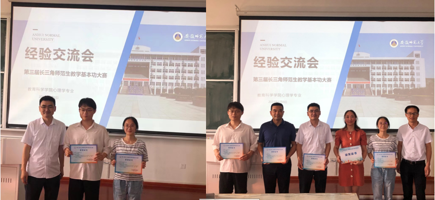 首先,王礼军老师对19级心理学专业张雪、李卓两名同学在第三届长三角师范生教学基本功大赛荣获一等奖表示热烈祝贺,两名同学一路披荆斩棘、越战越勇,从院赛、到校赛、省赛,再到长三角比赛中脱颖而出,用自己的实力和智慧取得了胜利,也证明了自己。同时,也祝贺韩建涛、全莉娟、何元庆三位指导老师,感谢三位老师培养出如此优秀的员工。随后,韩建涛老师给两位获奖员工颁发获奖证书,王礼军老师给三位指导老师颁发荣誉证书。