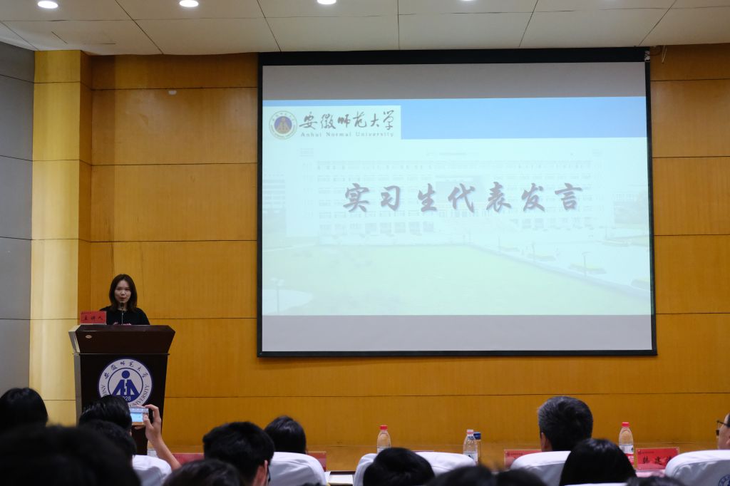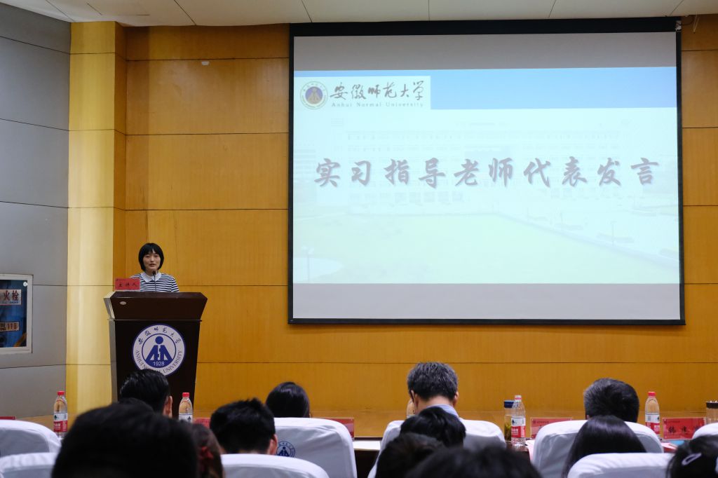 接着由实习指导教师马兴老师代表发言,马老师表示对同学们大学四年的成长与变化以及此次实习的收获进行了肯定,鼓励同学们坚定理想信念,在以后的从教过程中,爱岗敬业、热爱幼儿、教书育人、为人师表,争取做一名好老师。