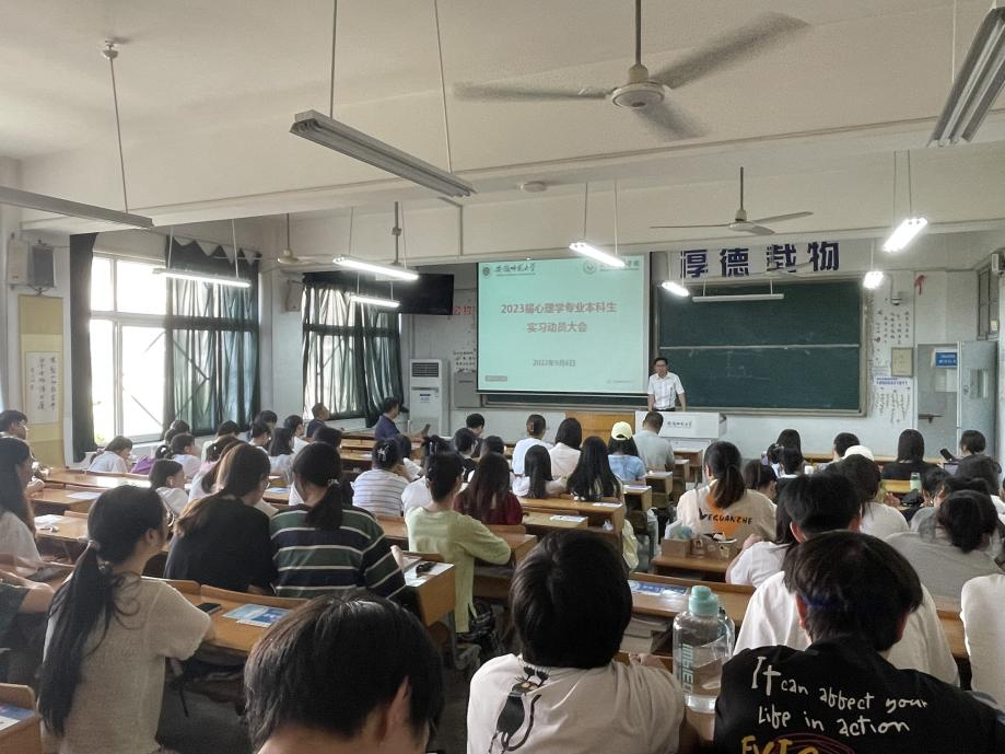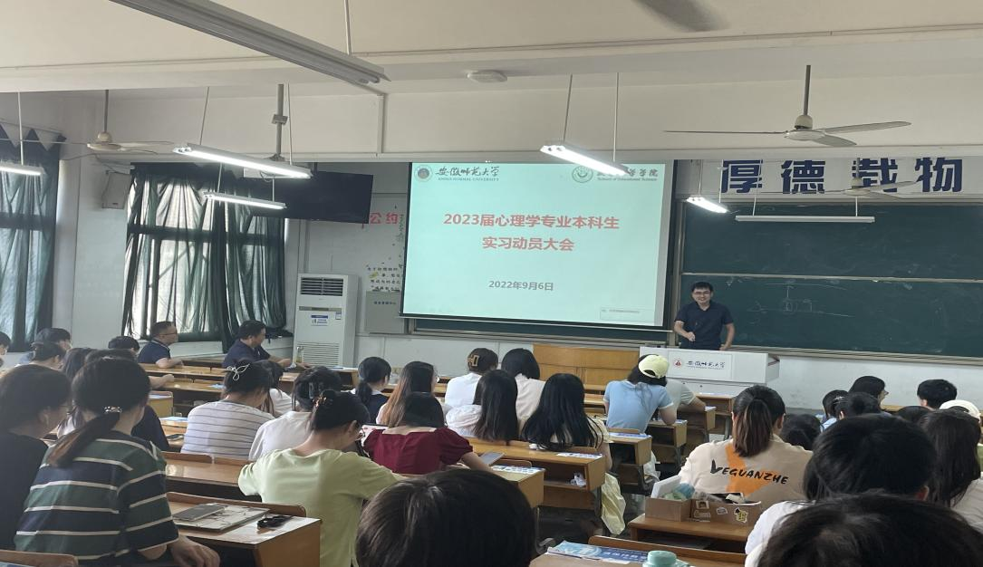 本网讯(教科院)9月6日下午,为顺利开展2023届心理学专业教育实习工作,公司心理学专业在田楼8202教师召开实习动员大会,本次会议由心理专业负责人王礼军老师主持,专业葛明贵、赵必华、宣宾、韩建涛、全莉娟、张冬梅、郭振娟、孙文强等校内实习指导教师以及2023届心理学专业全体员工共同参加会议。